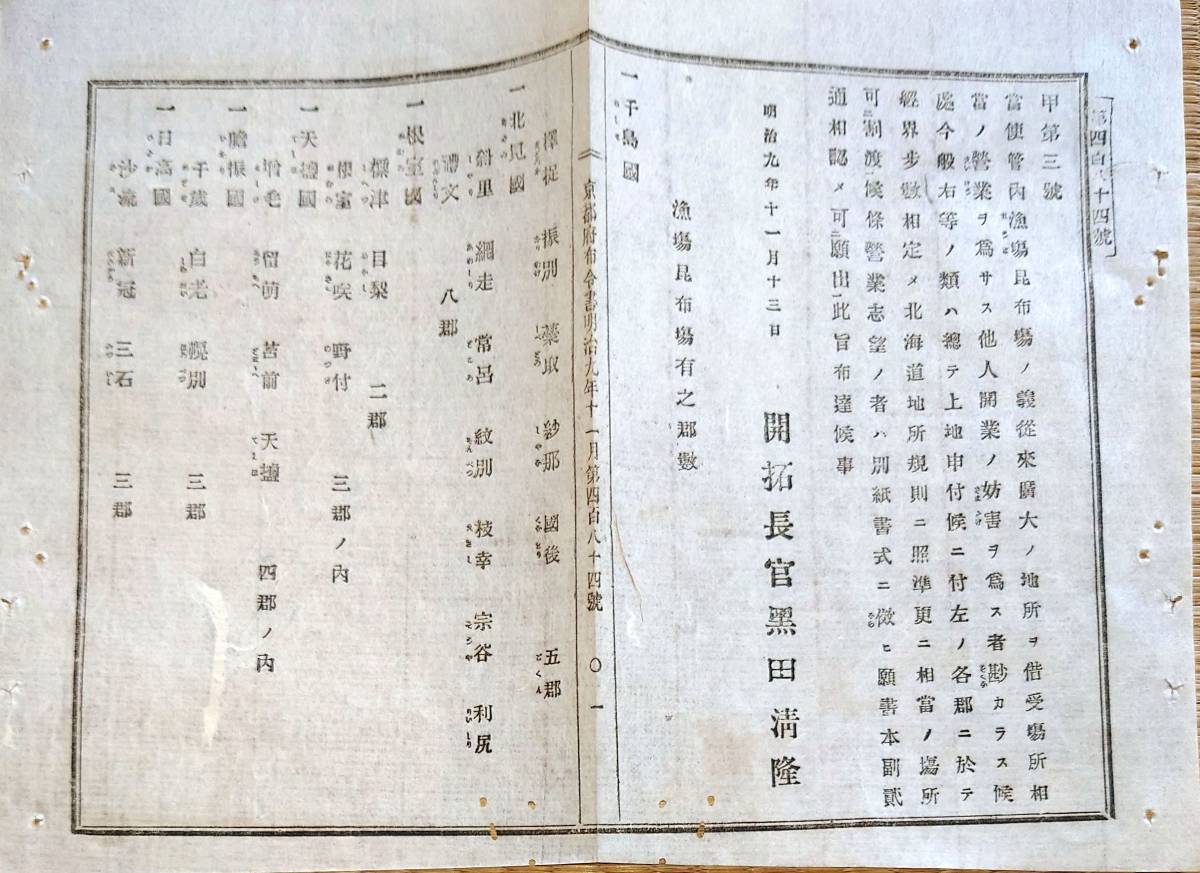 - f23072808〇明治布告布達 漁場昆布場之儀 北海道 開拓長官 黒田清隆 京都府 槇村正直 明治9年〇和本古書古文書