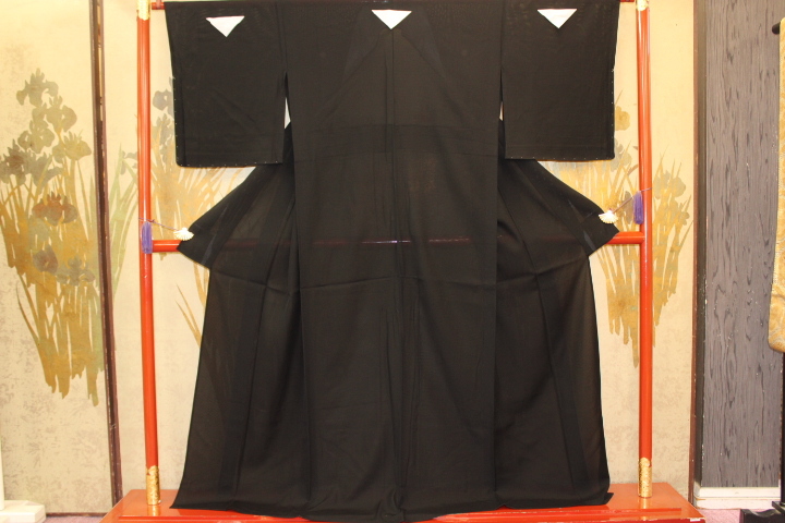 > きもの今昔6436 黒の礼装 絽の喪服 正絹高級駒絽単衣仕立きもの [着物のやまと]誂えシツケ糸付未使用品 身丈158cm