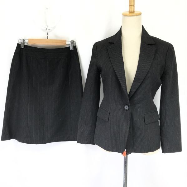 - NATURAL BEAUTY BASIC★ストライプ柄/ウール混/スカートスーツ/上下セットアップ【レディース/上S/下XS/黒】背抜き/Jackets/Set up◆pBH517