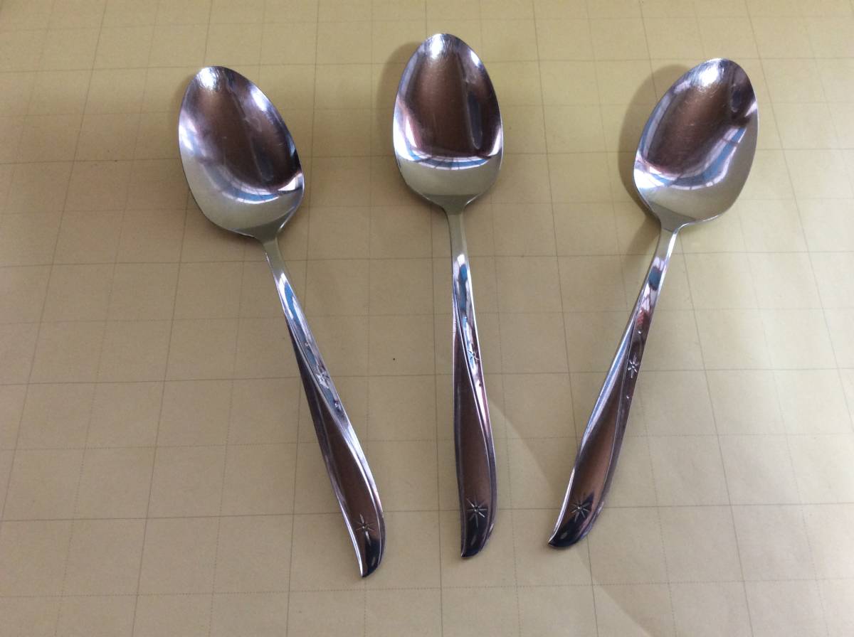 > 【Mid-flatware/C019/ONEIDA/Twin Star】オネアイダ/ツインスター/サービススプーン(3本)/Ex/ミッドセンチュリー/アトミックエイジ