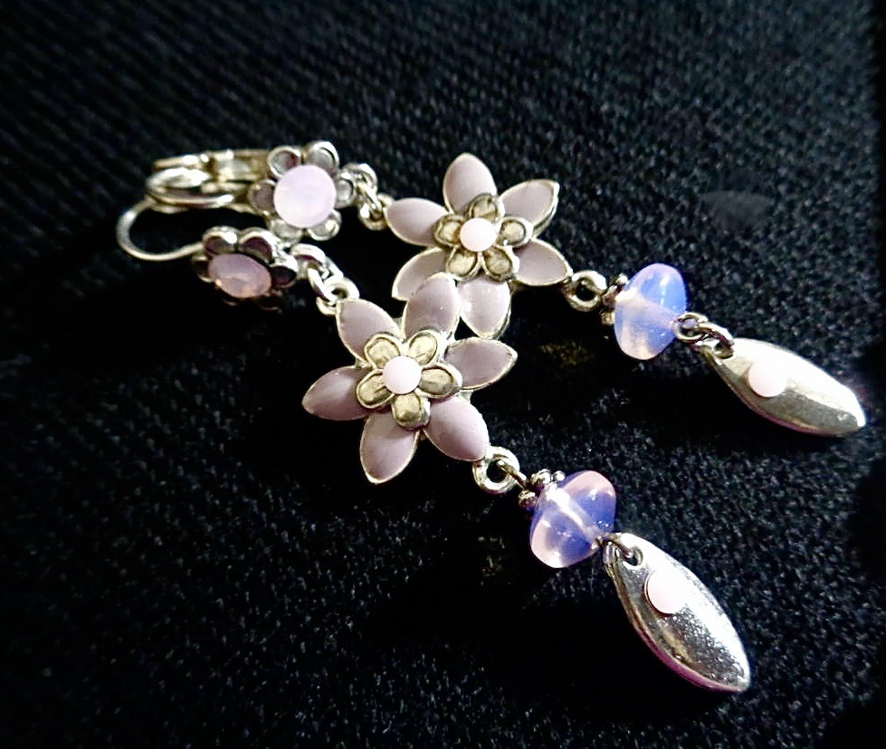 - ●豪華【BIJOUX CHORANGE】花モチーフ,ビーズ ラインストーン が揺れる/ピアス/シルバー留め具/刻印