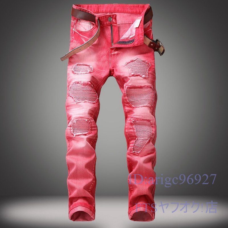 > A1602☆新品ダメージ ライダースパンツ デニムパンツ カジュアル ストレート メンズ デニム ジーンズ バイカーパンツ W29~W42
