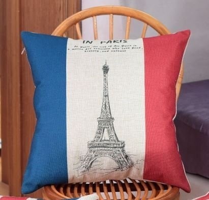 - LDL368# クッション ビンテージ風 トリコロールカラー エッフェル塔