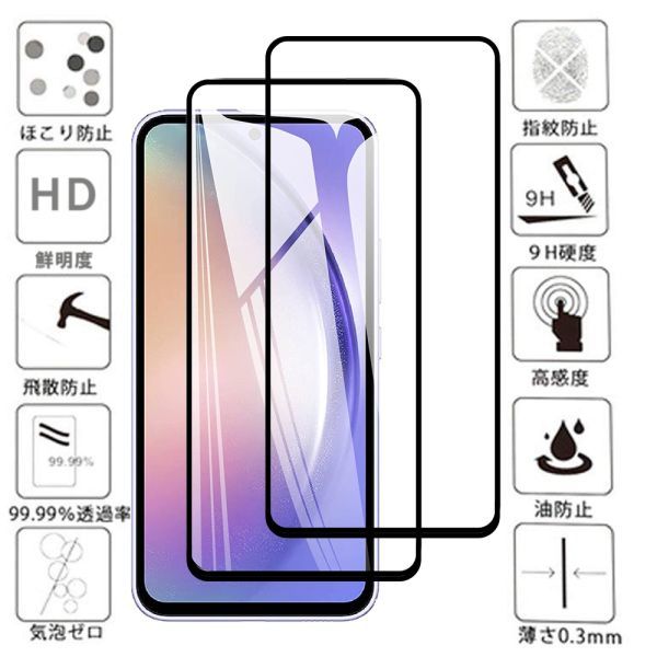 > 2枚入り 黒 Galaxy A54 ガラス フィルム SC-53D SCG21 ギャラクシー 画面 保護 カバー シール シート スクリーン Glass Film 9H サムセン