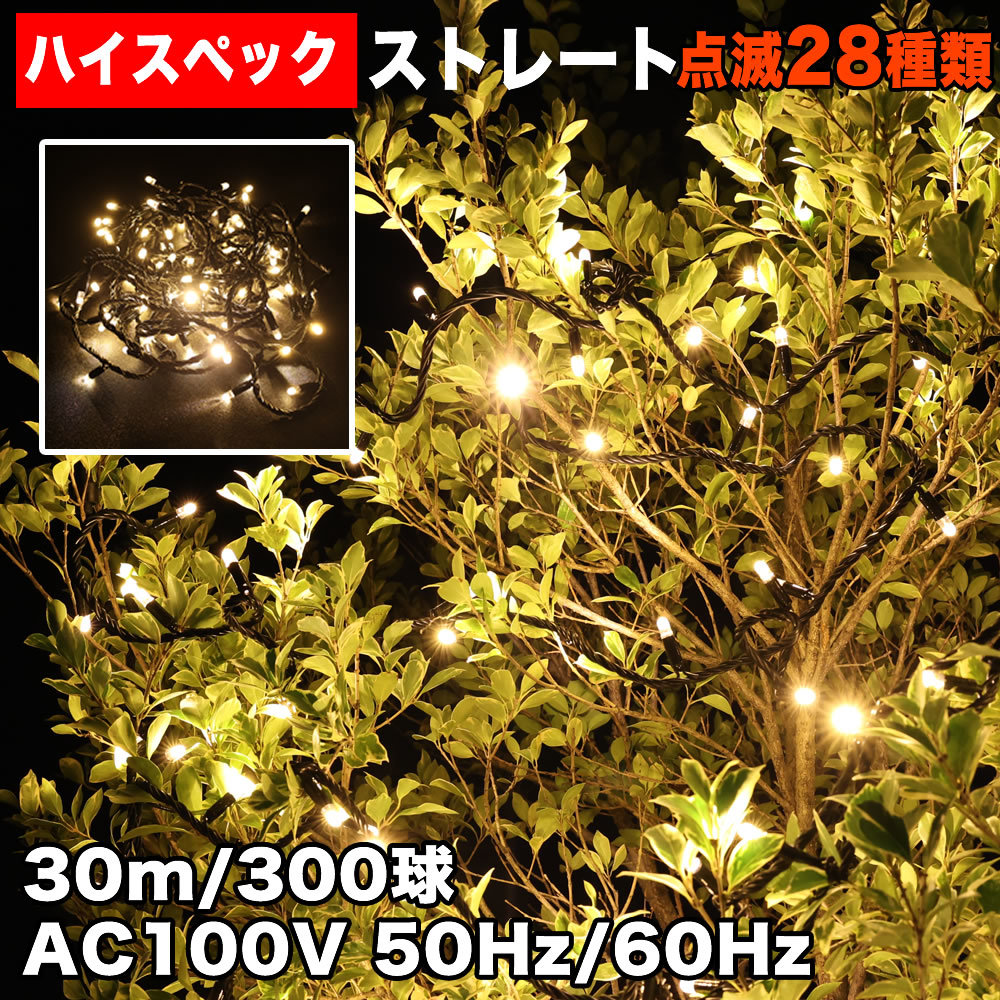 - クリスマス 防水 イルミネーション ストレート ライト ハイスペックタイプ LED 300球 シャンパンゴールド 28種点滅 Bコントローラセット