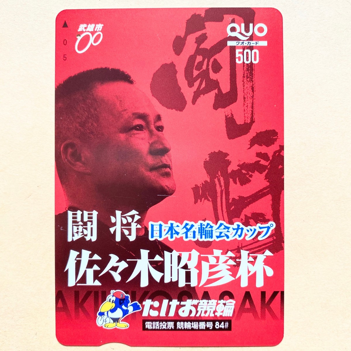 - 【使用済】 競輪クオカード 闘将 日本名輪会カップ 佐々木昭彦杯 たけお競輪