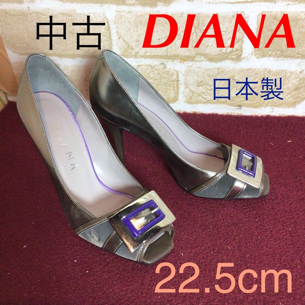 - 【売り切り!送料無料!】A-349 DIANA!パンプス!22.5cm!オープントゥ!シルバー!バックル装飾!おしゃれ!中古!