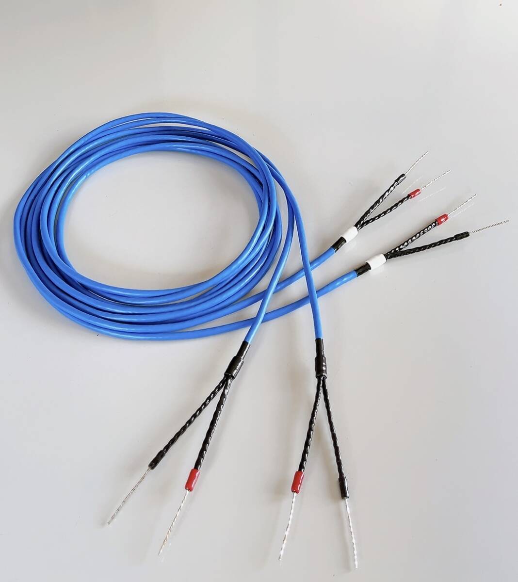 ■【RE-4BX】帯域ロスの無い全帯域の再生力が自慢で「音楽電流を大切に運ぶ」高性能のスピーカ-ケ-ブルです。 ※15年以上前に製造が終わった米国製の軟銅線系の独立多芯導体です→世界中でも当社の在庫のみの販売となります。★¥1000/mで「導体専門工房」が聴覚に溶け込む音色とコスパを追究し販売しました! ※ドンシャリとは無縁の「軟銅芯線系の耳障りの無い音色」と弱電技術を担保した「強力な導体構造」が特徴です。(1)カルダス社/イリジウム=¥35,200/m ・クロスリンク=¥28,600/mと導体性能&音色を比べて頂ければ幸いです。 ①世界ブランド各社の低性能モデル「大口径・2芯・対向ヒネリ・網組シ-ルド」仕様とは完全に一線を画す再生力です。 ②音色の感性は人様々ですが,世界ブランド各社の廉価版モデルを完全に引き離すとのご感想もたくさん頂戴しています。(2)「楽器の原音」「女性ボ-カルの吐息の生々しさ」「ペット類の金属管の金属音」の再生力に威力を発揮します! ・クリフォ-ド/ブラウンのトランペット&Helen Merrillの妖艶な唄声は6N高純度CN/S-1200を完全に超えています。★RE-4BXの開発は「高性能で安く独立多芯」の「虫の良い真逆の発想」から始まり→やっと米国製導体に辿り着きました。 ・残念ながら「全ての高性能化方法」の担保は不可でしたが→世界ブランド各社の入門用ケーブルは完全に凌駕しています。(1)理想はヨルマ社等のハイエンド最上級モデル/ステートメント/¥84万/m「独立12芯+多独立シールド」等ですが。 ・¥1000以下/mの開発は88760等の→「大口径2芯対向撚線&重ね防護」か「小口径独立多芯&無防護」の選択でした。(2)音色の特徴は「独立多芯は→全帯域の高い再生力」&「防護力/シ-ルド力は→自然な透明力」が特徴です。 ・「自然な透明力」は素線口径の小径化&極性高分離等でも可能です→※大口径は静電容量等が大で透明力を失います。(3)RE-4は残念ながら無シ-ルドですが、音楽電流の減衰/劣化に効果の大きい高性能/低価格の導体です。 ①美辞麗句のリップセ-ルスや高純度6~9N・振動防止材・アニ-ル処理等の音質にホボ影響が無い方法はカットしました。 ・低性能ケーブルの特徴→2芯/大口径/±極対向ヒネリ導体は→音色の劣化が顕著で加工は簡単ですが不採用です。 ②芯線先端は「SS-47ハンダ」を塗布し再生力&音質劣化&耐久力に強いスピーカーケーブルに仕上げました。★先端芯線補強の「ハンダ塗布について」考えてみると。 ※(高抵抗)鉛ハンダは電導率が非常に悪い→音質劣化の原因となります→が「無鉛ハンダは極低抵抗」です→甘言に注意。(1)音質劣化の犯人は「鉛含有の高抵抗の有鉛ハンダ」で、特に「昔のハンダ」は全て鉛を含有していますよ! ・鉛は導通率が最悪ですが、無鉛ハンダは純銅以上の無抵抗で、「ハンダは音色が悪い」とは電流に無知なお話しです!(2)ハンダの音質劣化の原因は、音質が良いと話題になった「鉛を含む昔ハンダ」等の無知識な販売者のセールストークです。 ・簡易工法「カシメ」は強電用の省稼働方法で→24金等のメッキを押しつぶし→音楽電流/アナログ弱電流には不適です!■4BXは音楽性の高い全帯域の再生力が特徴で、中域が減衰し低域と高域を強調する疑似高音質ケーブルではありません。(1)ブランドケ-ブルと比べハイエンド並みの豊かな音楽性&原盤の描写力の「全帯域の再生力を最優先に開発」しました。 ・低価格帯では稀な ①独立多芯 ②素線=24AWG ③小口径単線 ④±極性の構造分離⑤SS-47の塗布。(2)価格を超えた全帯域の再生力が特徴の全帯域用のスピーカ-ケーブルです→「ドン&シャリ調」では有りません。 ①価値観は様々ですが→楽器の原音や音色を楽しむ、全帯域の再生力を望む皆様には低価格&高コスパの1品となります。 ②中域を減衰させ高域&低域を強調する疑似高音質導体では無い→評価の苦い経験もアリ→特にご注意を願いします。 ①美しい音色は確実に多芯に軍配が上がる・・・高品質・高価格導体のみに導入される構造。 ・「弱電流は素線の表面を流れる」表皮効果で、低劣化&高効率伝送が可能→「多素芯線の組み合わせ方法は社外秘」。 ②音質劣化の大きな要因は「電流値」→多芯は電流値が分散し低電流となる→低電流は低劣化・低損失となる! ・低劣化は高い再生力→低電流は静電容量・電界・磁界をも軽減可能→独立多芯は高い製造コストですが高い再生力! ①太い素線/1,0㎜以上は静電容量(電流ブレキ-現象)&その他の影響で音色は劣化&減衰する。 ②世界ブランド各社/ハイエンド「素線は0,4~1,0㎜の多芯」で高い再生力→1,0㎜以上&2芯対向ヒネリは低再生力。 ①単線は=小径は全帯域の厚い音色&自然な透明力に威力を発揮する→太い単線は静電容量が大きく音楽電流には不適。 ②細線は=ノイズに弱く再生容域が狭い、高純度&黄金比細線→聴覚・電流諸性能は同等→柔軟性が良く電源コードに適。 ①世界ブランドの高性能導体に匹敵しノイズ・静電容量を軽減する安価で高性能な方法です。 ②極性の完全分離