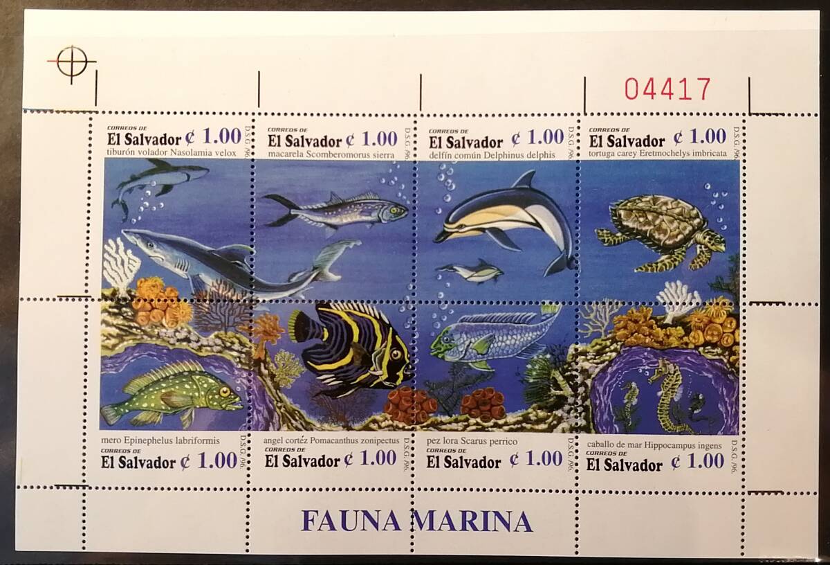 - エルサルバドル 海洋生物(8種ミニシート) MNH