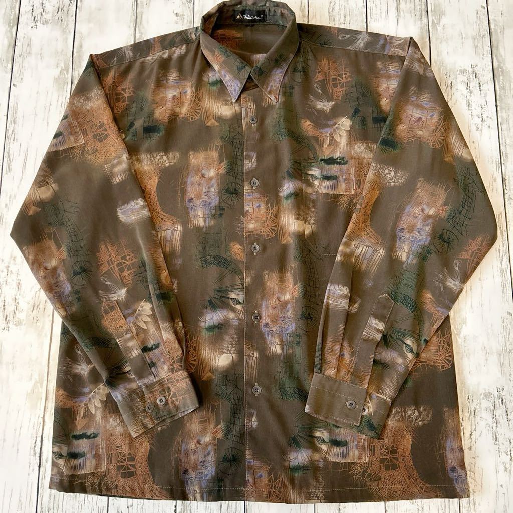 - RatokuII 総柄 柄シャツ レトロ アート ビンテージ 長袖シャツ ポリエステル100%
