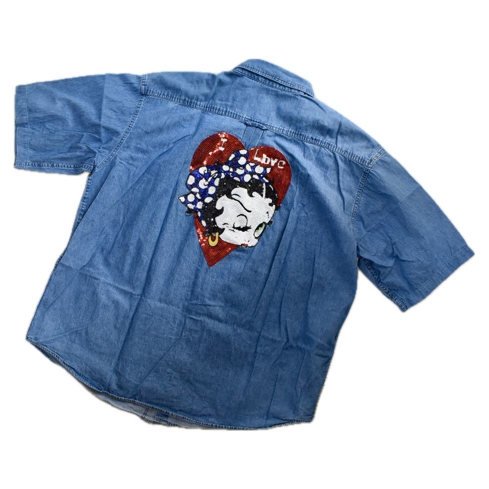 - Betty Boop スパンコールワッペン デニムシャツ ベテイ ビッグサイズ