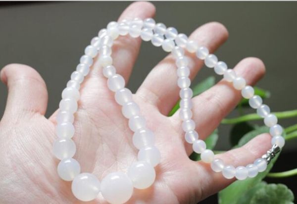 - [EasternStar] 海外発送 天然石 ネックレス 玉サイズ6-14mm 長さ約42㎝ パワーストーン Power stone ホワイトアゲート