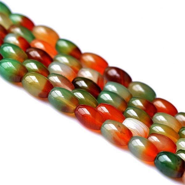 - [EasternStar] 海外発送 ライスカット クジャク アゲート 6×9mm 天然石 ビーズ 孔雀瑪瑙 メノウ 1連売り 長さ約40cm
