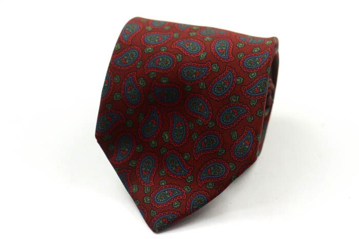 > イヴ・サンローラン シルク YSL 総柄 ペイズリー 小紋柄 ブランド ネクタイ メンズ ワインレッド Yves Saint Laurent YSL