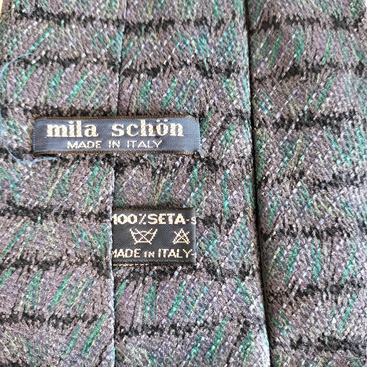 - ミラショーン(Mila Schoen)紺グレー横線ワンポイントロゴネクタイ