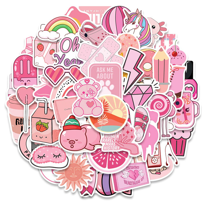 - 50枚 ステッカー ピンク イラスト かわいい 防水 耐水 シール 詰め合わせ 1166