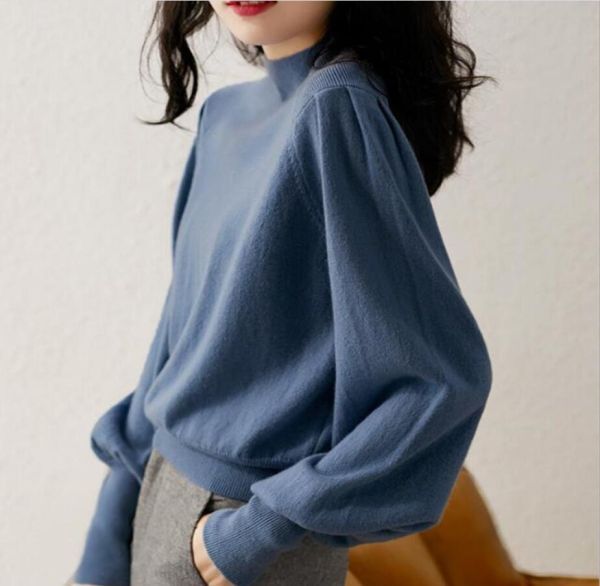 - 新入荷 / / エレガント おしゃれ ニットセーター 気質大人 20304050代 ハイネック カシュクール ニット トップス / ブルー