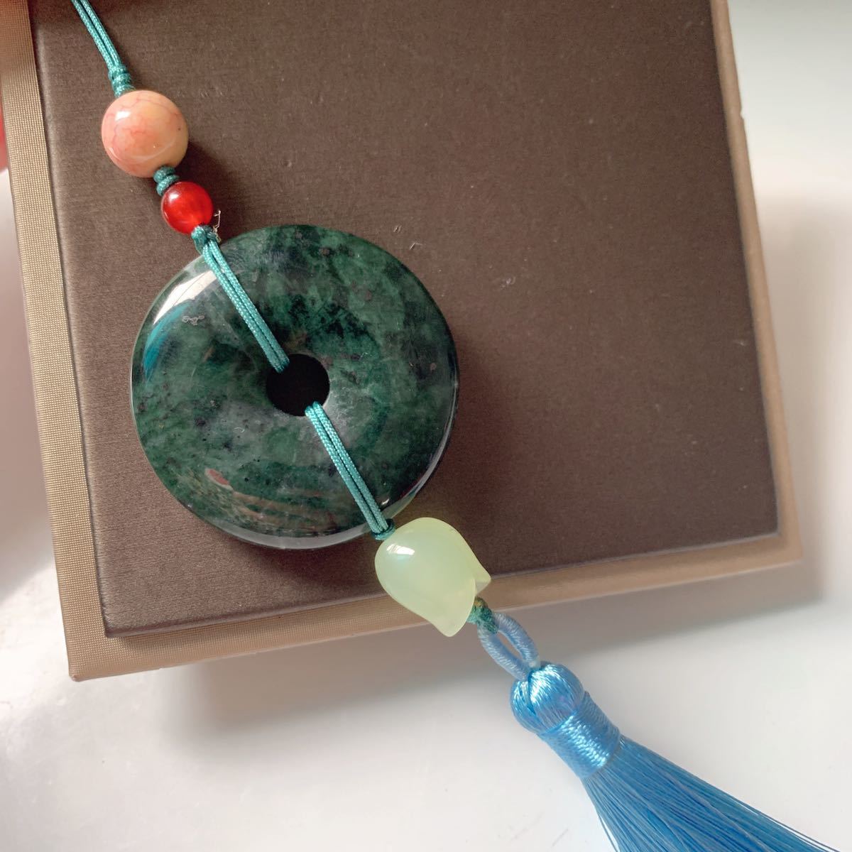 - ◇バッグチャーム◇岫玉◇ヒスイ◇天然石◇平安扣◇お守り◇パワーストーン◇車載アクセサリー◇飾り物◇巾着袋付◇プレゼントにも