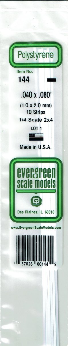 - エバーグリーン .040x.080 プラ棒 1.0x2.0mm 10本入り