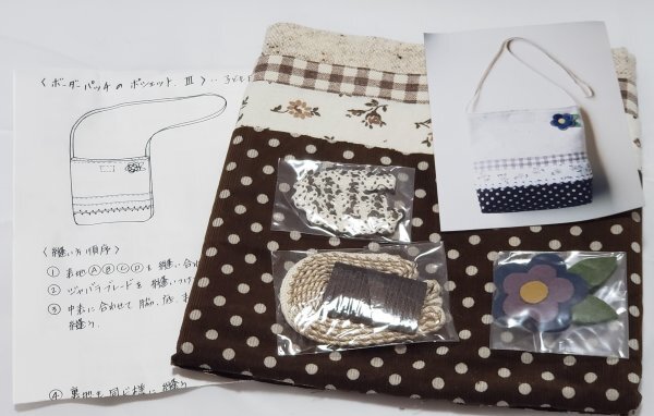 - 美396 ボーダーパッチのポシェット 子供用 作成キット レシピ付き ブラウン 未使用
