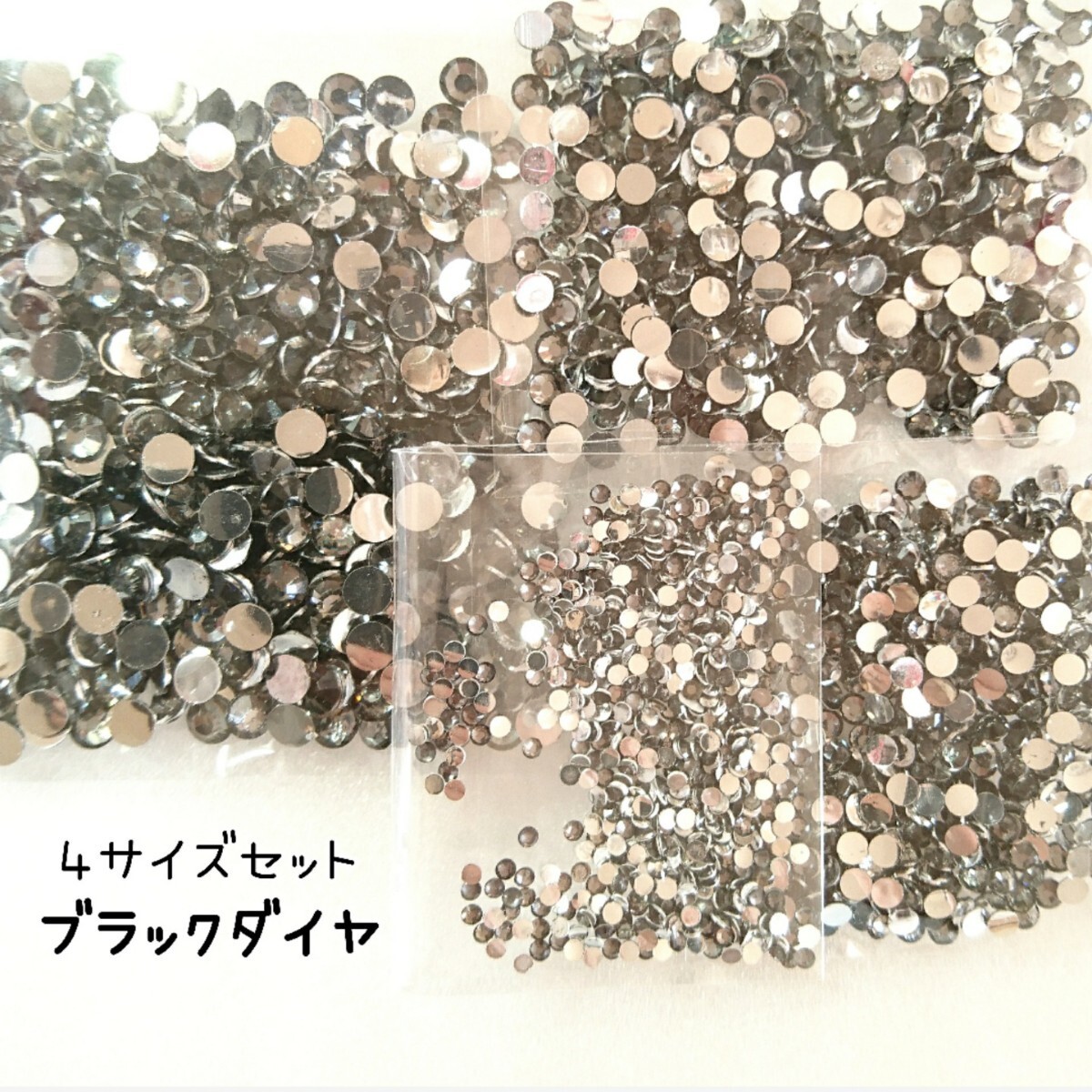> 高分子ストーン(ブラックダイヤ)4サイズセット ★デコパーツ ネイル ラインストーン デコうちわ セルフネイル/匿名配送