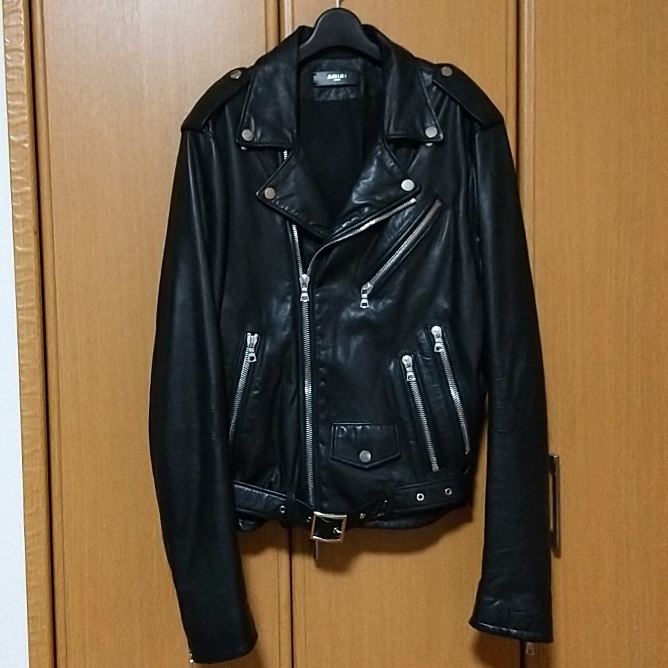 > AMIRI アミリ ダブルライダースジャケット 牛革 L 黒 ブラック カーフ レザー SAINT LAURENT CELINE Dior homme BALMAIN FAITH CONNECTION