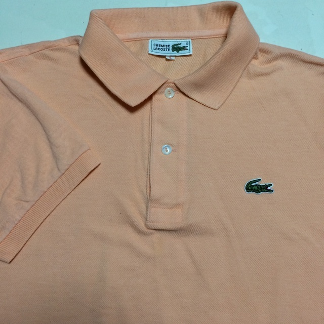 - 美品 CHEMISE LACOSTE ラコステ 半袖ポロシャツ サイズ4 淡いオレンジ色 単色 無地 鹿の子生地 サイドスリット