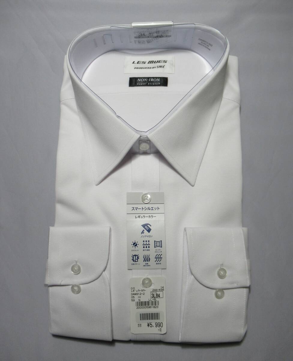 > 未使用品 3Lサイズ★LES MUES/レミュー◎シャツ レギュラーカラー ホワイト ニット素材 スーパーストレッチ