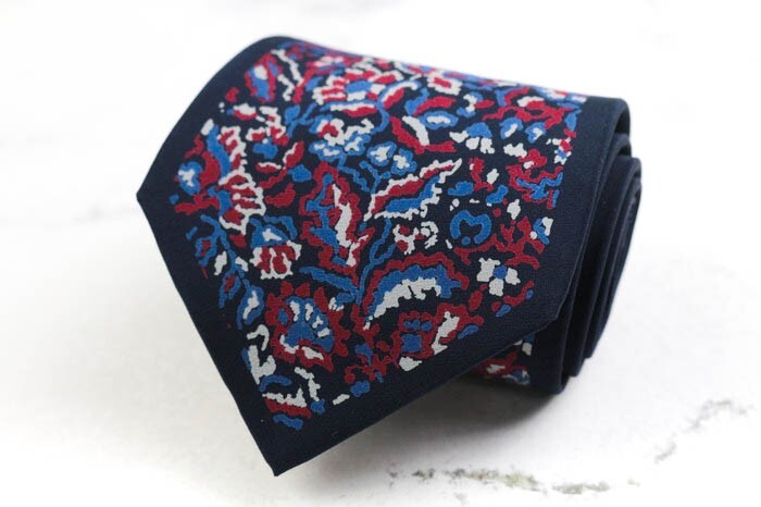 - ミラショーン シルク ロゴ リーフ柄 総柄 イタリア製 ブランド ネクタイ メンズ ネイビー 良品 mila schon