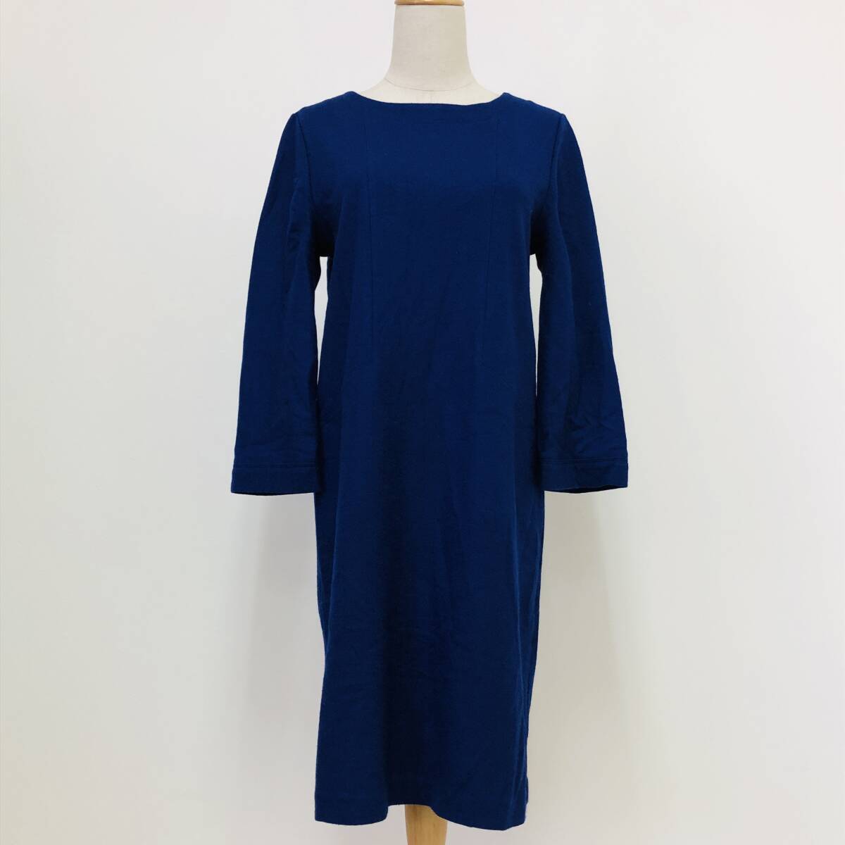 > k3388 7-IDconcept レディース ワンピース サイズ40 青 ひざ丈 裏地 毛100% 日本製 万能 上品 人気 ナチュラル エレガントガーリーチック