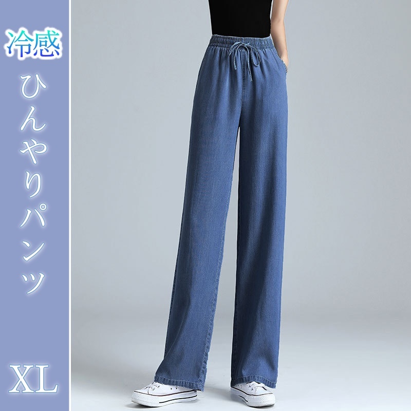 - 送料無料★即納 新品 ひんやり パンツ 冷感 デニムパンツ ストレートパンツ 脚長パンツ★XL/ブルー
