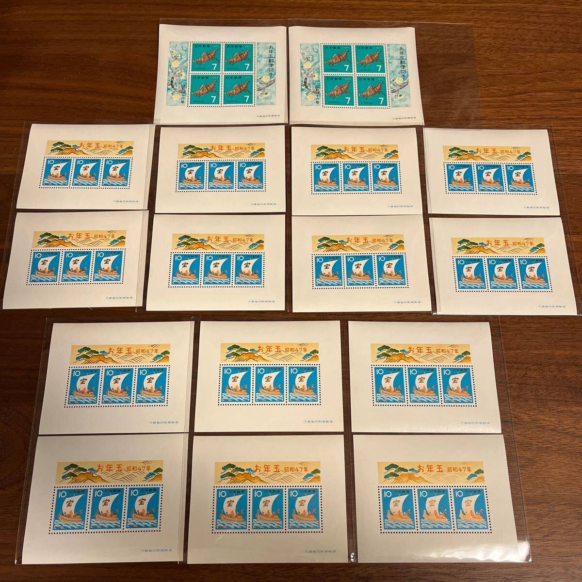 - 切手 お年玉 切手シート 昭和46-47年 2年分 2種 9シート 額面266円 年賀切手