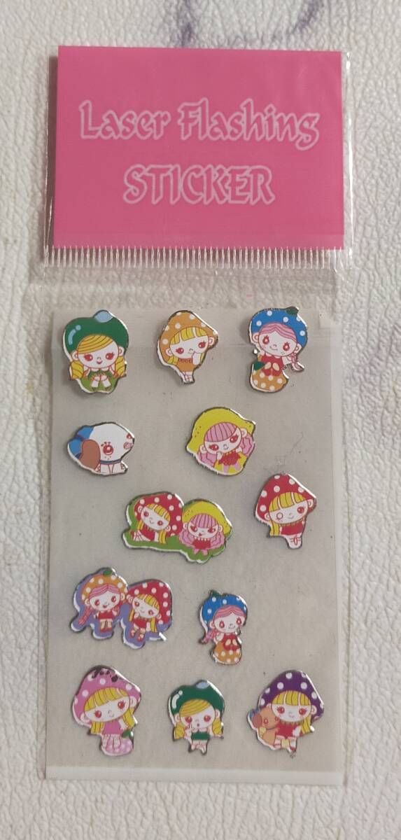- 未使用★Laser Flashins STICKER きのこ 女の子 レトロ風 かわいい