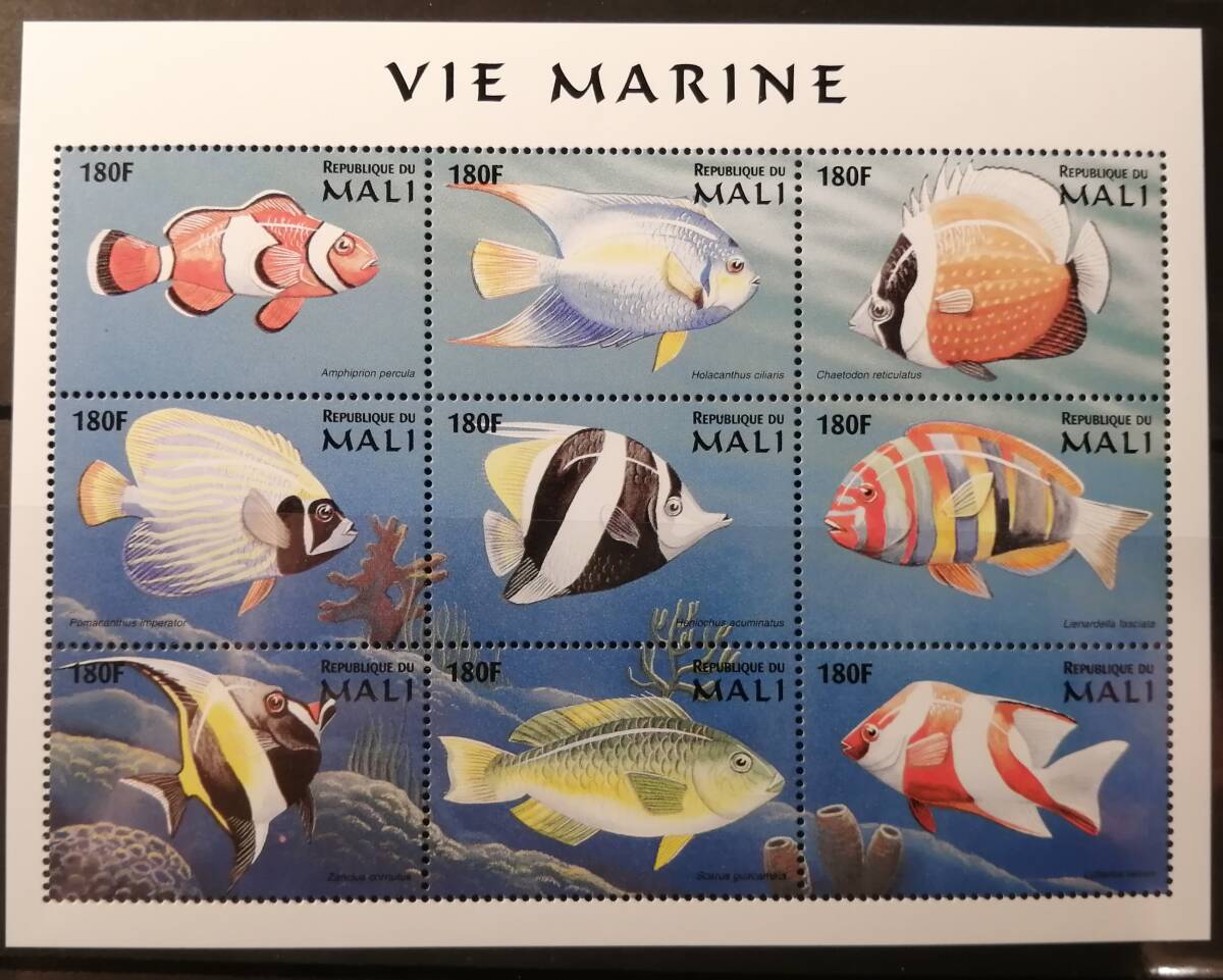 - マリ(2) 魚(9種ミニシート) MNH