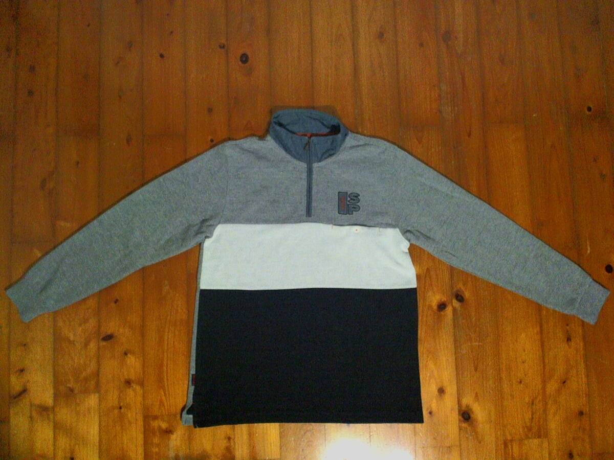 - ☆インスパイア【INSPIRE】切り替えニット地 ハーフジップ長袖シャツ M グレー 白 濃紺