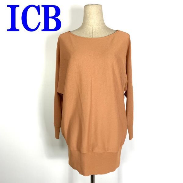 - ICB アイシービー長袖シアーデザイントップステラコッタバックオープンデザイン 透け感有 ドロップショルダー ゆったり感 S C9176