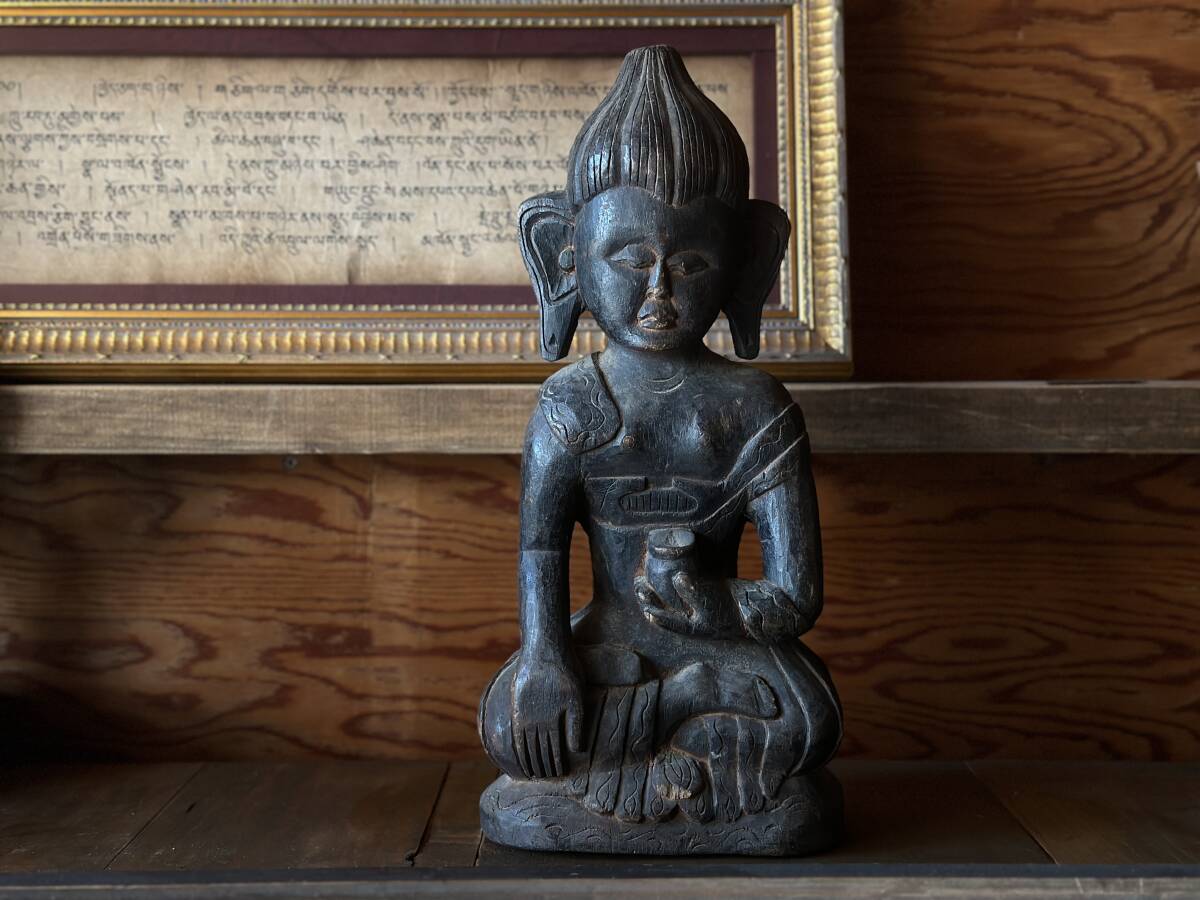 - 仏陀 プリミティブ 木彫り アンティーク くり抜き 民族 少数民族 朽木 アート インテリア 仏像 オブジェ インド 民芸 古民芸