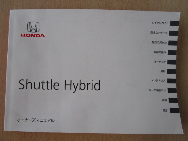 > ★a5928★ホンダ シャトル ハイブリッド Hybrid オーナーズマニュアル 30TD4600 取扱説明書 説明書 2015年(平成27年)3月★