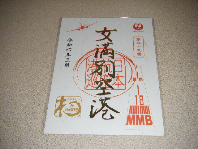 > 【新品未使用】JAL 日本航空 御翔印 女満別空港 MMB 令和6年3月 1周年 金・ゴールドVer.1枚.