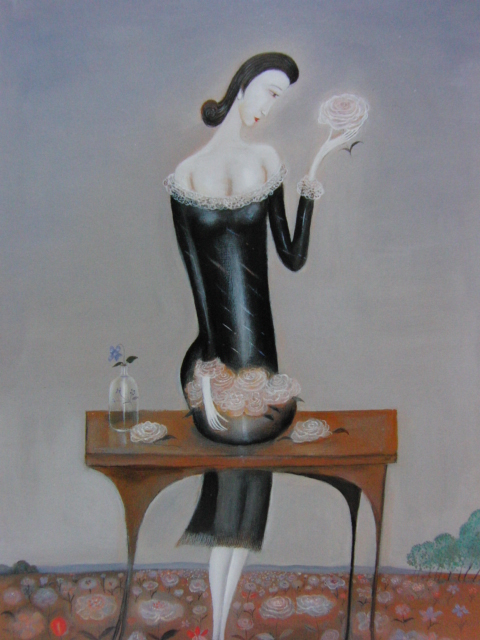 - 斎藤真一、「レースの女」、希少画集・額装画、日本製・新品額縁にて額装致します、状態良好、日本人画家