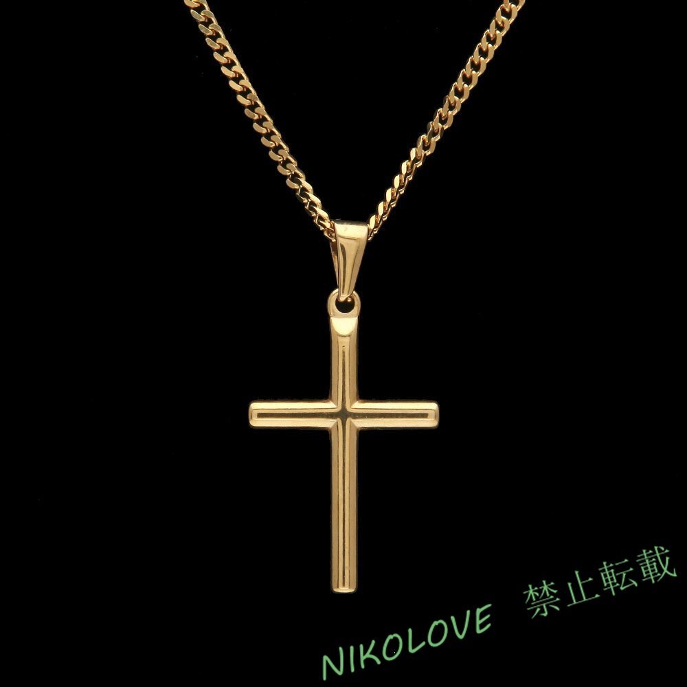 - 新品 高級感 プレゼント ゴールド18KGP メンズ レディース 高品質 極太喜平マイアミチェーン ネックレス クロス LA741