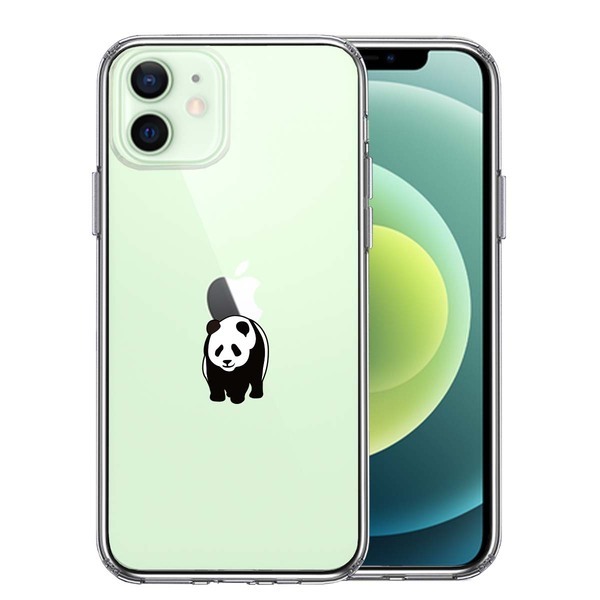 - iPhone12mini ケース クリア パンダ りんご おんぶ スマホケース 側面ソフト 背面ハード ハイブリッド