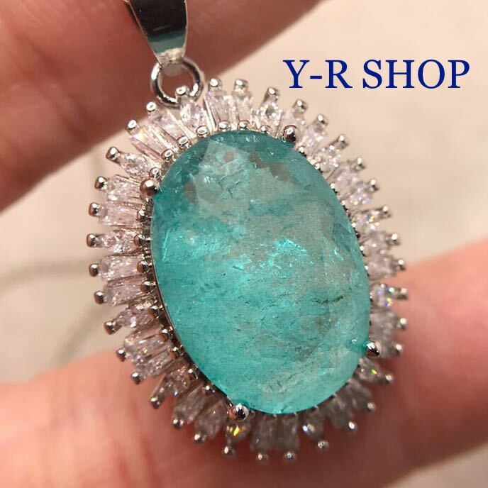 > パライバトルマリン風カラーストーンとキュービックジルコニアのゴージャスペンダント★レディースネックレスシルバーアクセサリー新品Y-R