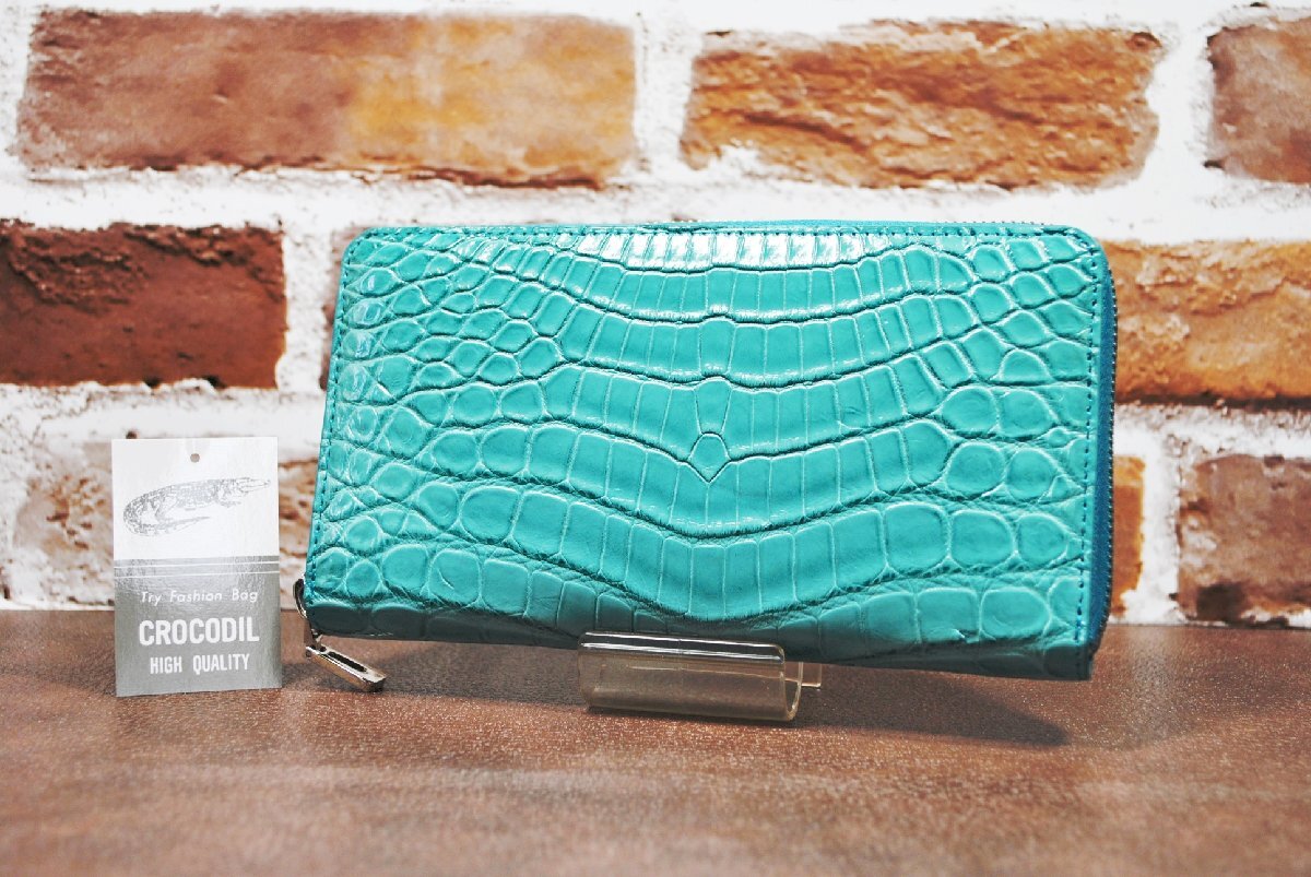 - ■新品 高級品 !送料無料☆ 美しさが格上 本クロコダイル革 ラウンド長財布 (エメラルドグリーン)プレゼントにも