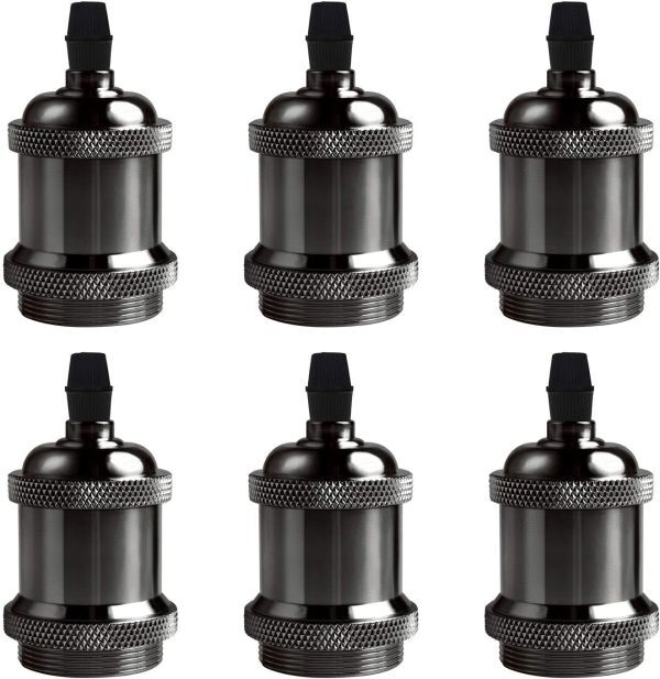 - OTD 交換用ランプソケット 電球ソケット ランプホルダー 電球ホルダー スチール製ゴールド LED対応 レトロ E26口金 【ブラック 6個入り】