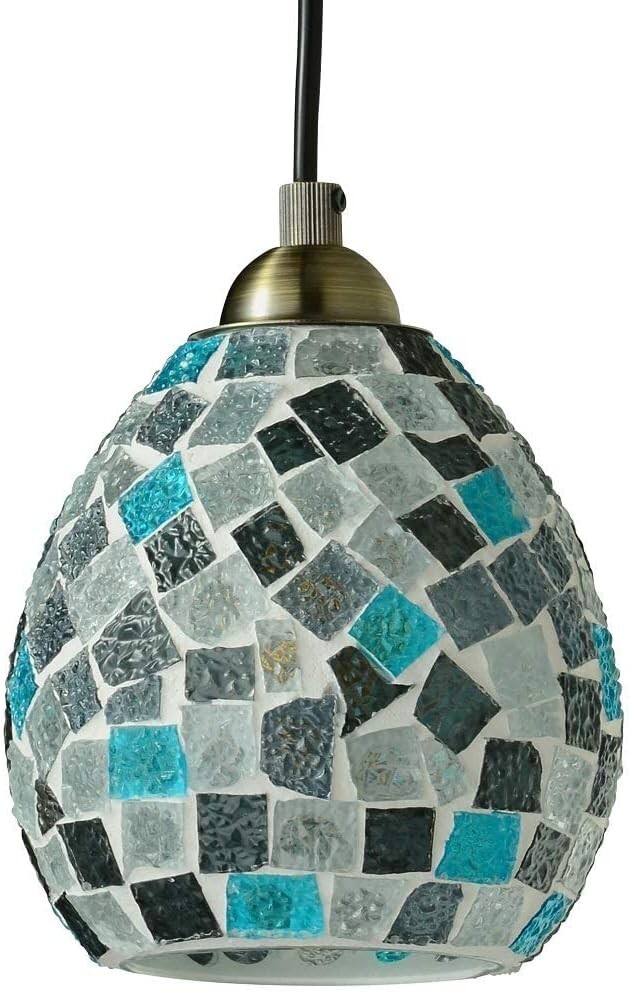 - 女神のライト ステンドグラス ペンダントライト モザイク LED対応 E17 北欧 レトロ モダン アンティーク【灰青】
