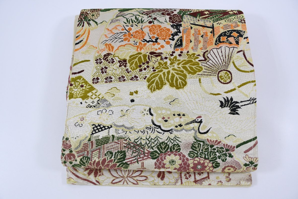 - 名古屋帯 アンティーク 鶴 花 帯丈326cm ★着物屋 ne-9175 桜庭呉服店