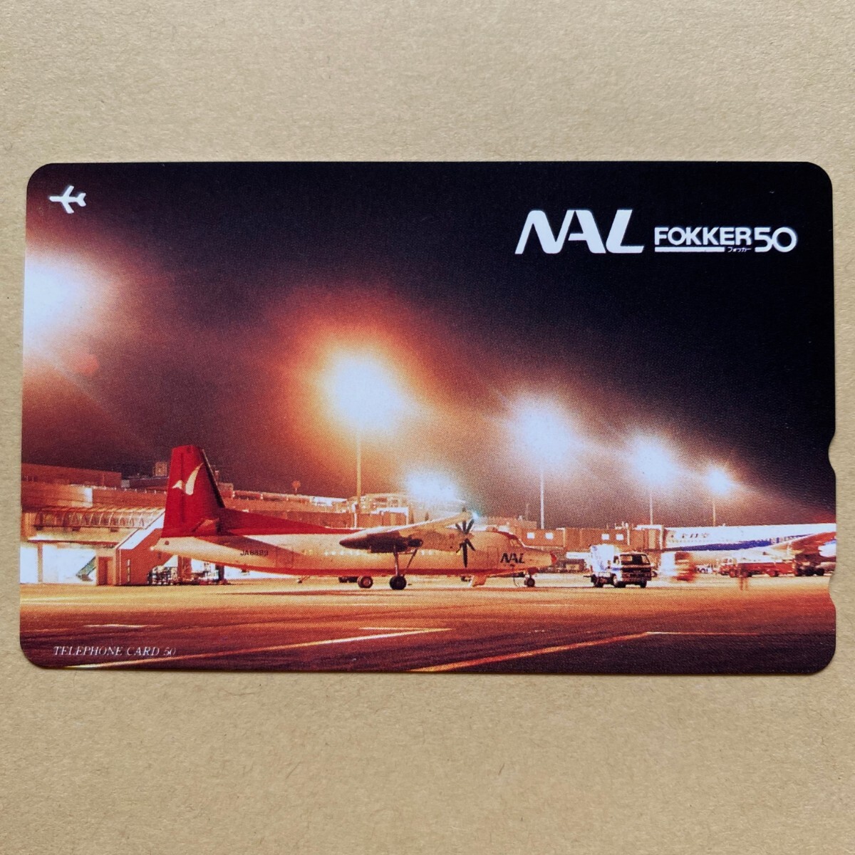- 【未使用】航空機テレカ 50度 ナショナル航空 NAL Fokker50