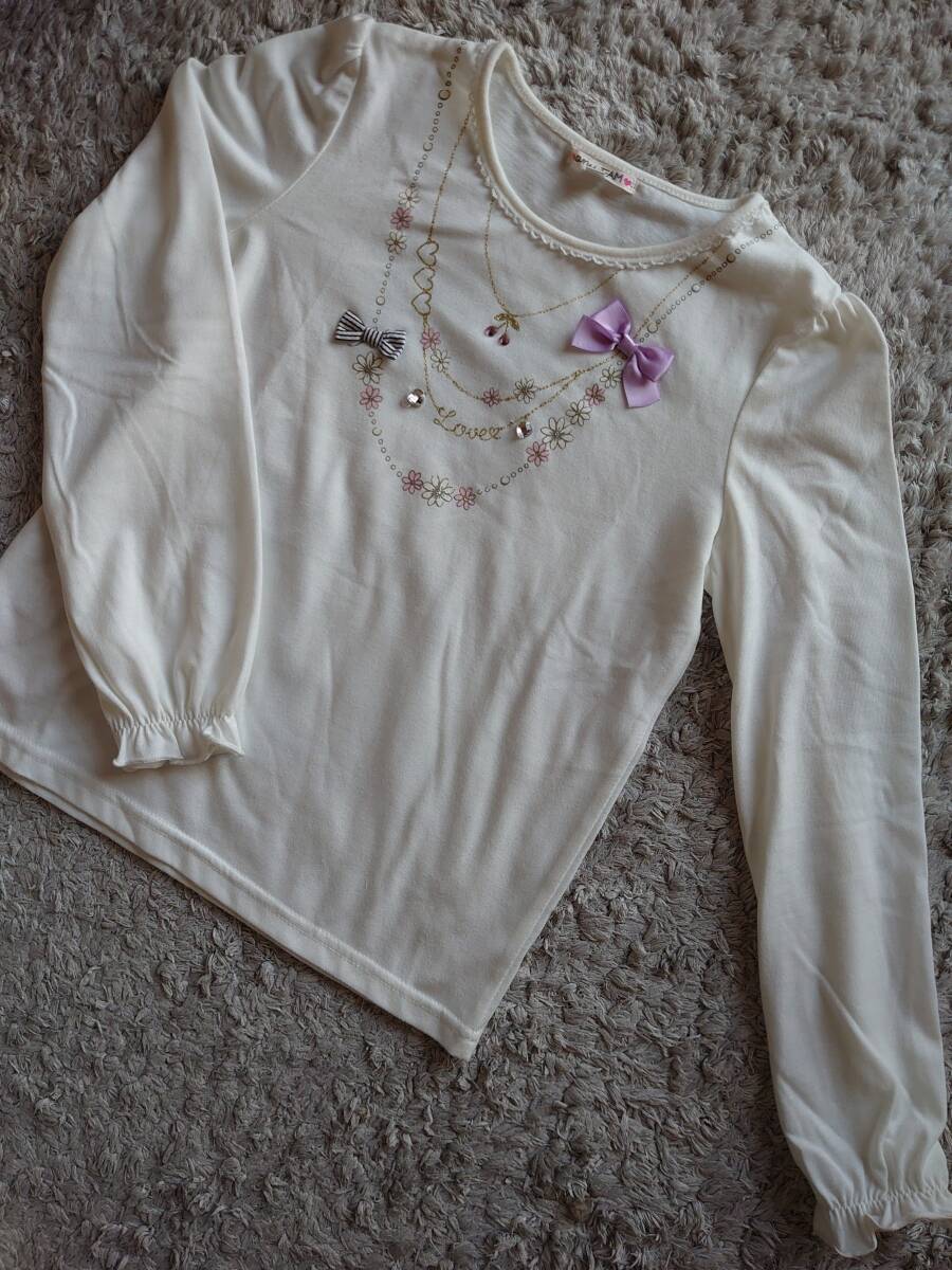 - anyFAM*エニィファム*ハートさくらんぼリボンビジュー*可愛い*150cm*長袖カットソー*美品*パフ袖*シャーリング袖口*