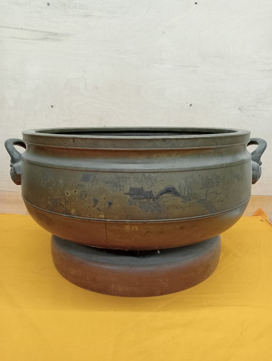 - 奈良発 旧家 蔵出し 真鍮 火鉢 三つ足 アンティーク 古民家 古民具 五徳 鉄瓶手 あぶり